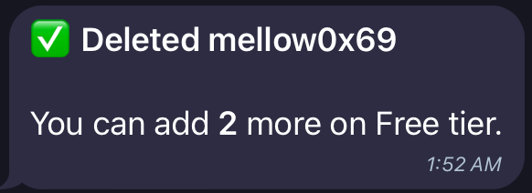 Once you have deleted a Twitter KOL, you will be pinged with confirmation that they were deleted.