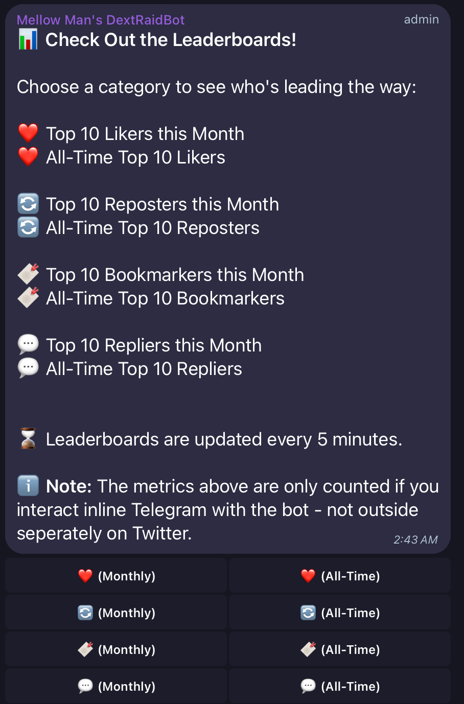 If the TG Group has Pro Tier, you can see a many different Leaderboards!